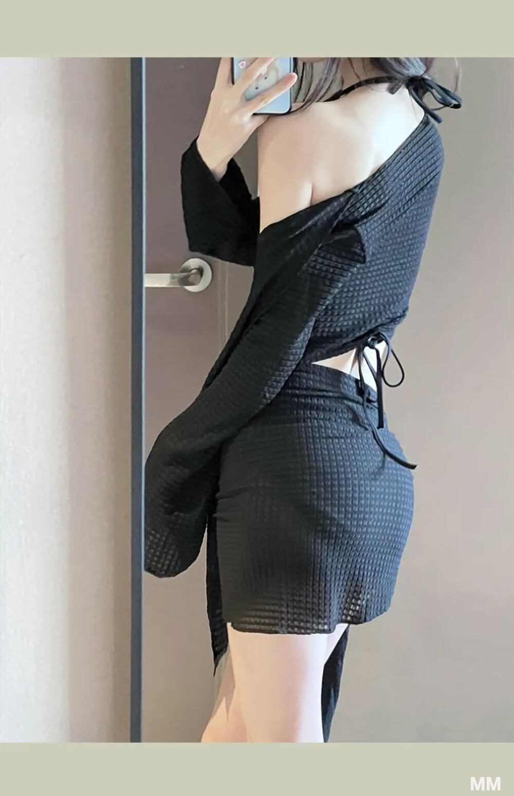 女性用ワンピース水着,ハイウエスト,腕立て伏せ,ホルターネック,カーディガンカバーアップ,韓国水着 韓国系水着 セパレート水着 ワンピース水着 T240626104843_01