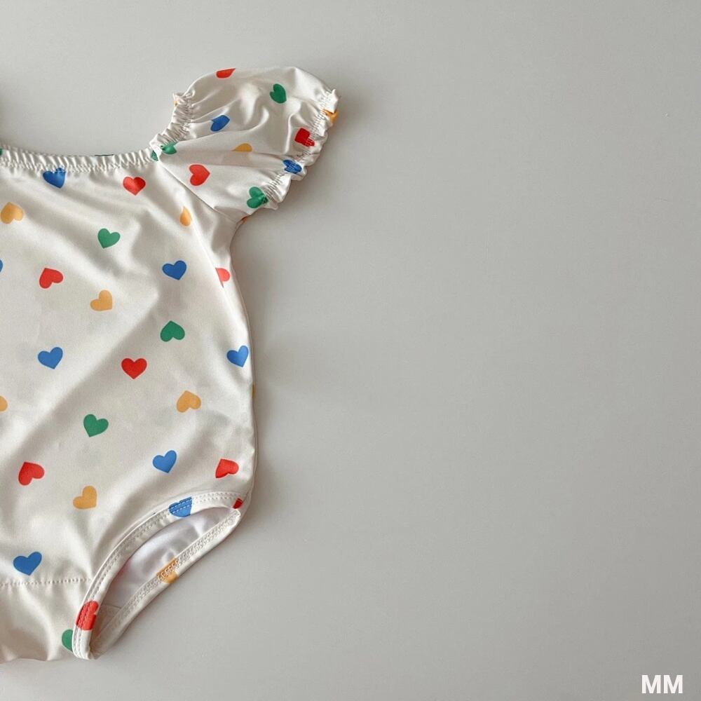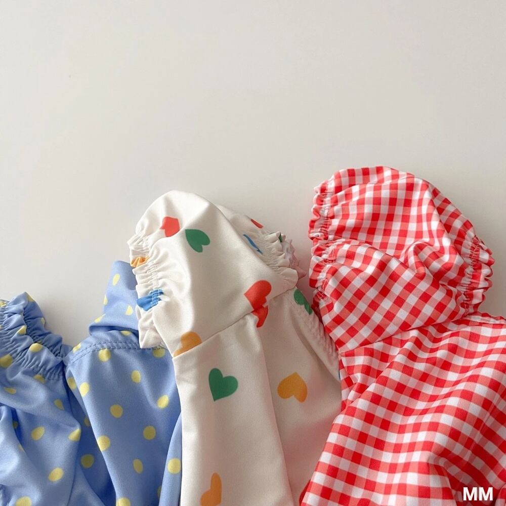 新生児用帽子付き水着、バブルスリーブ、プリント、速乾性、防水、韓国版、女の子、Instagram、新生児、1個 韓国系水着 セパレート水着 ワンピース水着 T240626105008_01