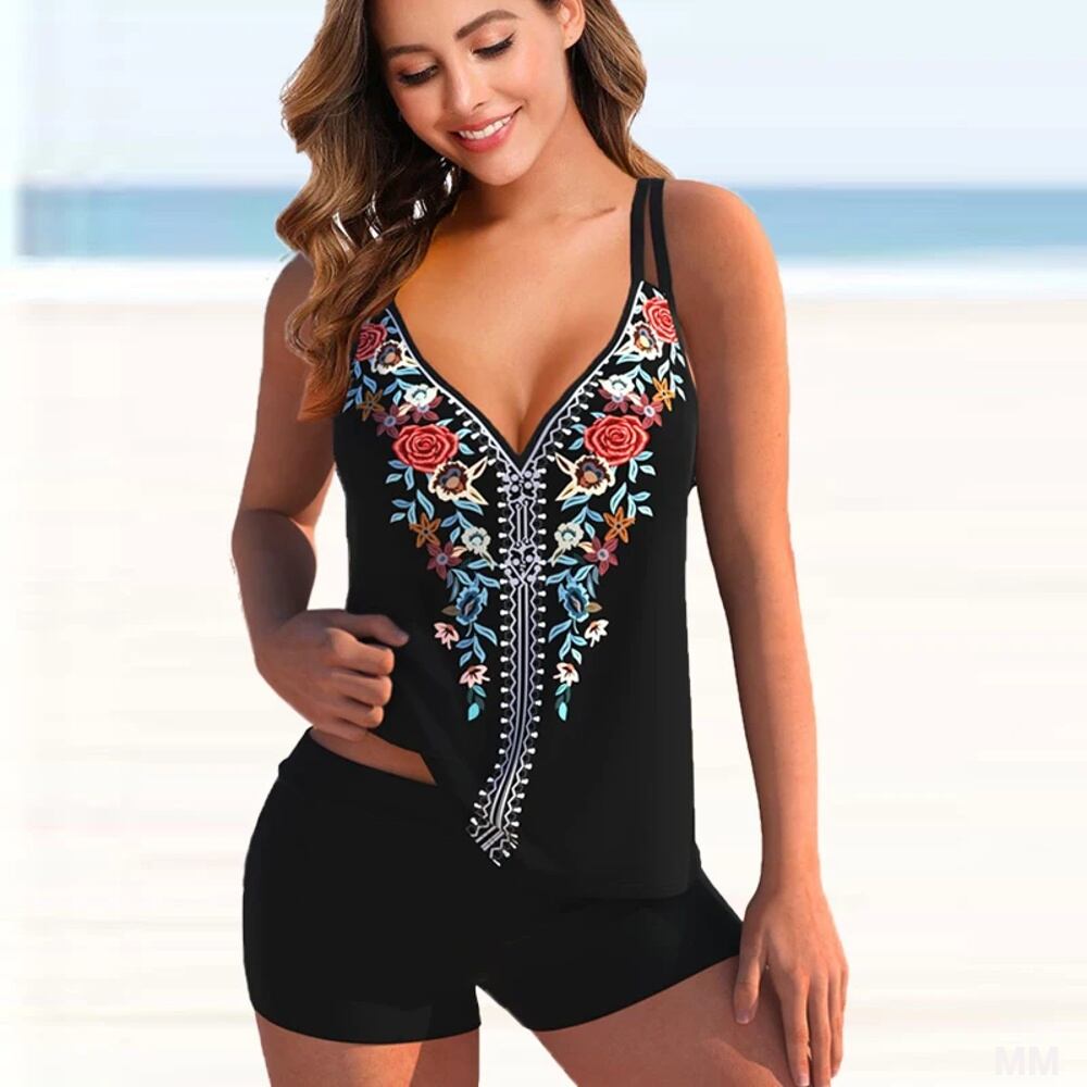 女性用ツーピース水着,ビーチウェア,水着,タンキニ,花柄,S 6XL 韓国系水着 セパレート水着 ワンピース水着 T240626105048_03