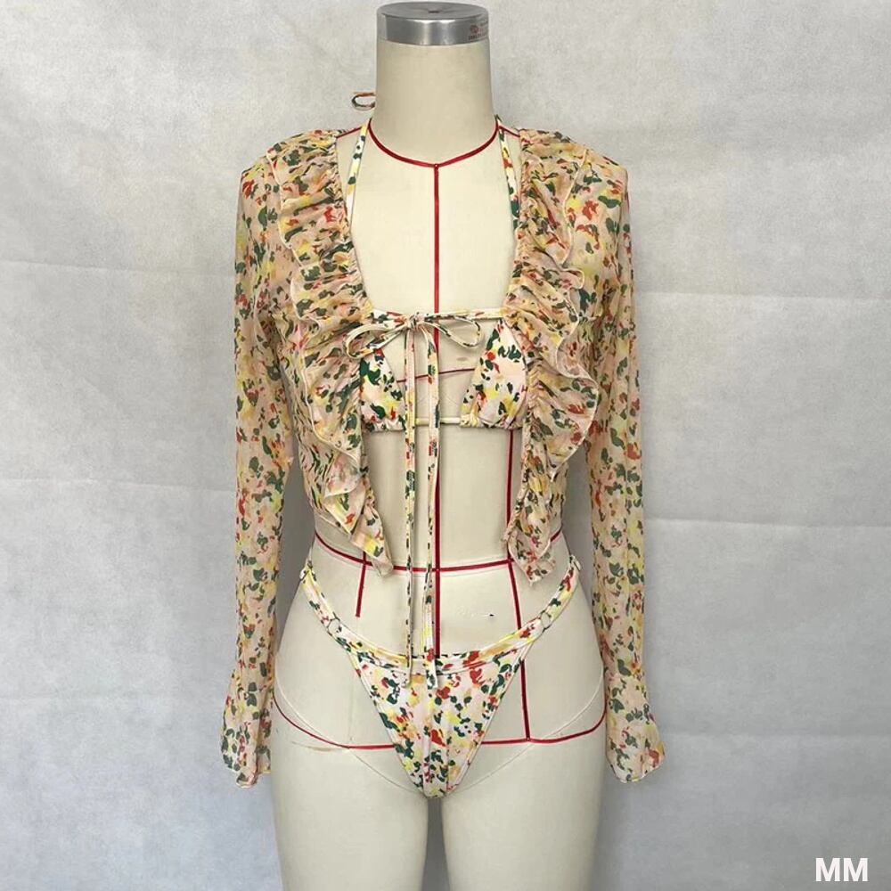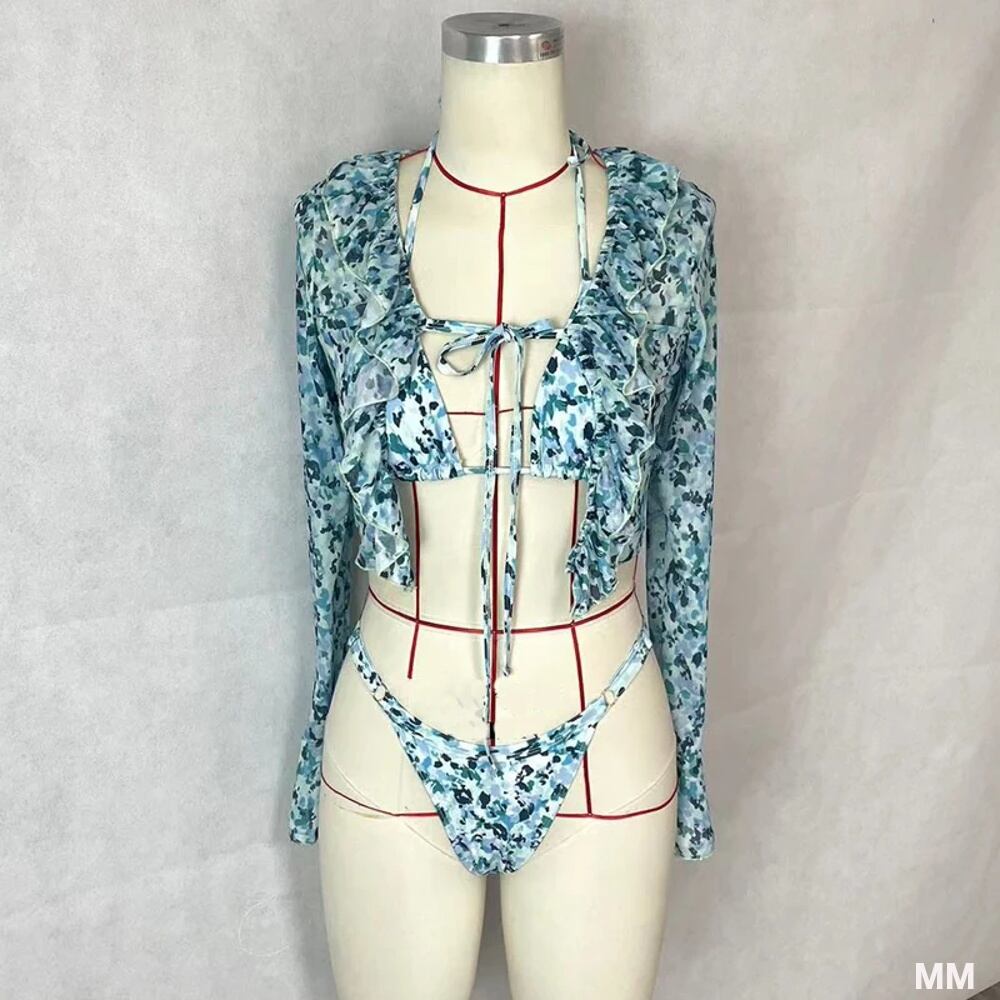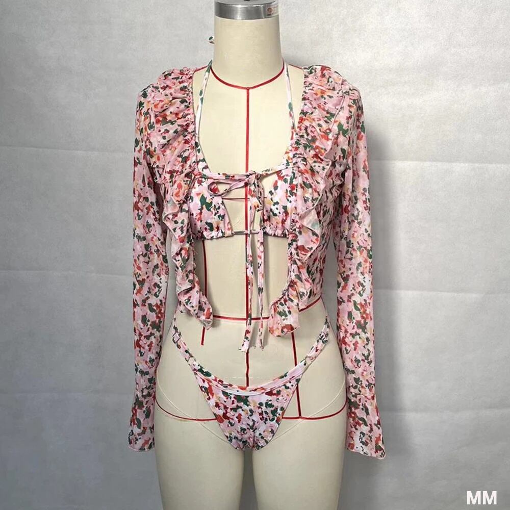 Beachcici 女性用スリーピースフローラルプリントビキニ,長袖ホルターネックビキニ,セクシーなレトロスタイルの水着,ビーチ,休暇,夏 韓国系水着 セパレート水着 ワンピース水着 T240626105119_01