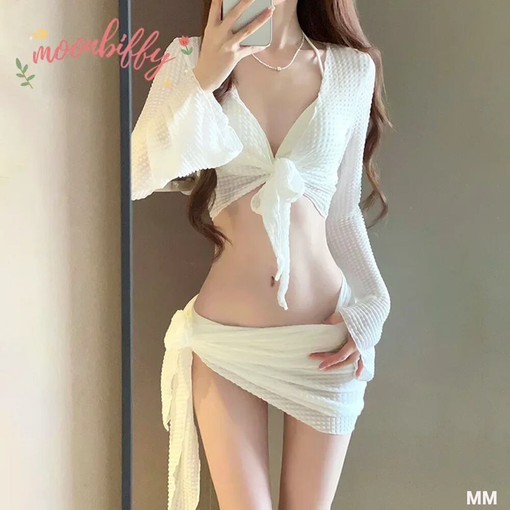 女性用韓国スタイルのセータービキニセット,ハイウエスト水着,ホルターネック水着,カーディガンカバーアップ,ホワイト,韓国スタイル 韓国系水着 セパレート水着 ワンピース水着 T240626105149_01