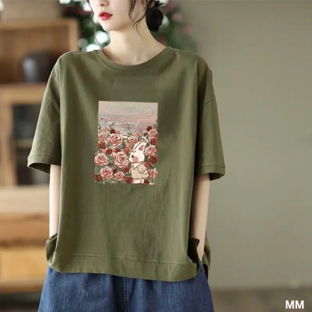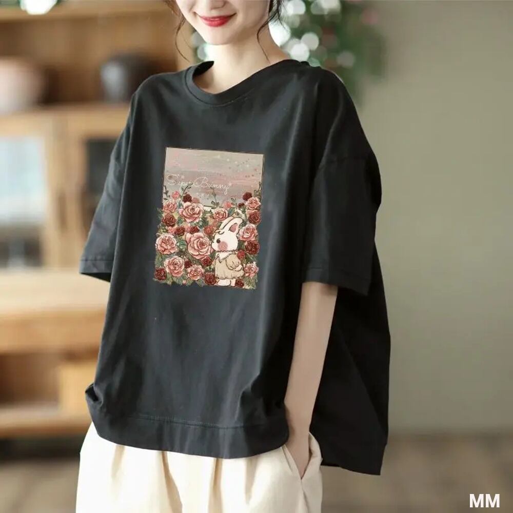 女性のための漫画のプリントTシャツ,だぶだぶのラウンドネック,半袖,ミニマリストトップ,単色,カジュアル,ファッショナブル,新しい,夏,2024 Tシャツ シャツ T240619134004_02