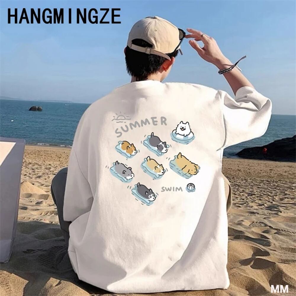 日本のアニメの犬のプリントTシャツ,半袖トップス,漫画の綿のTシャツ,ゆったりとした服,ハイストリート,夏 Tシャツ シャツ T240619134057_03