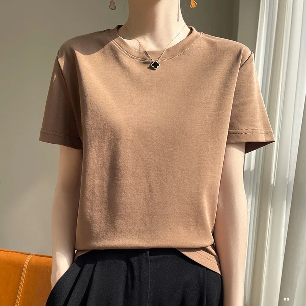 半袖Tシャツ,綿,女性用,砂のある顔のタイトなトップス,半袖,ハイエンド,クール ボトム ボトムス ズボン T240619133103_02