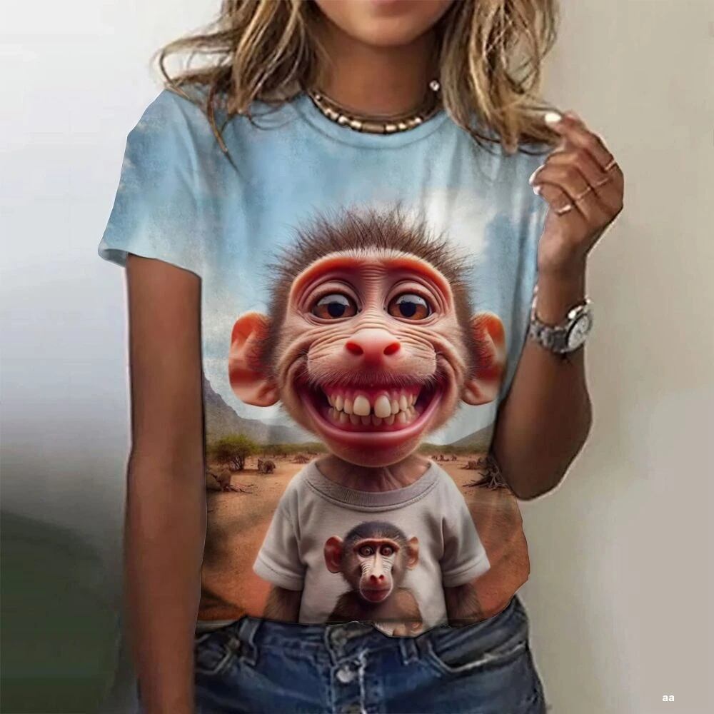 女性の動物のプリントTシャツ,半袖のTシャツ,ゆったりとしたカジュアルな婦人服,日常のストリートトップ,ファッショナブル,キュート ボトム ボトムス ズボン T240619133122_01