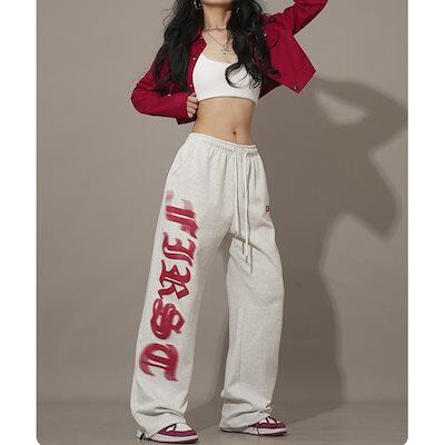 白とグレーのヒップホップ巾着デザインスウェットパンツレディースルーズワイドレッグヒップホップスウェットパンツジャズダンスパンツトレンディ