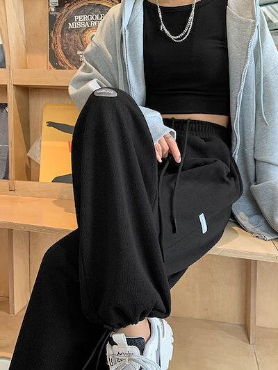 ブラックスポーツパンツレディースパンツ新しいストレートルーズカジュアル小さい冬ワイドレッグスウェットパンツ★11