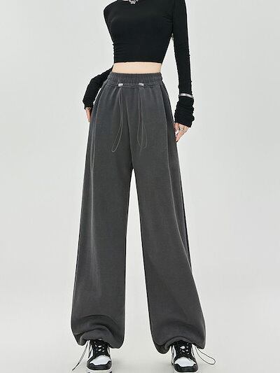 レディーススポーツパンツ2024新作ストレートカジュアルプラスベルベットスリミングワイドレッグパンツスモールアメリカンスウェットパンツ