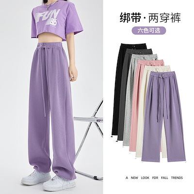 パープルスポーツパンツレディースパンツハイウエストストレートレッグスウェットパンツドレープカジュアルフロアレングスワイドレッグパンツ服★★5