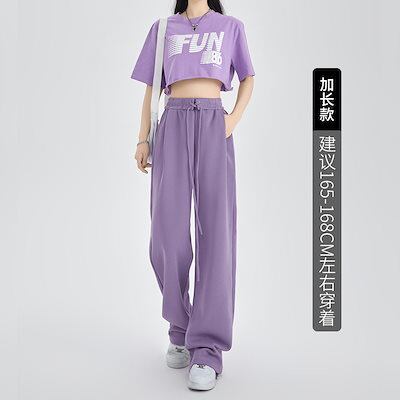 パープルスポーツパンツレディースパンツハイウエストストレートレッグスウェットパンツドレープカジュアルフロアレングスワイドレッグパンツ服★★11