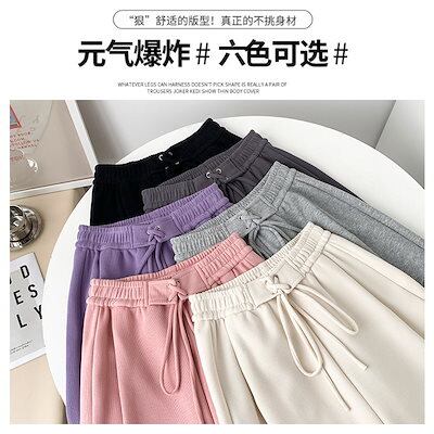 パープルスポーツパンツレディースパンツハイウエストストレートレッグスウェットパンツドレープカジュアルフロアレングスワイドレッグパンツ服★★12