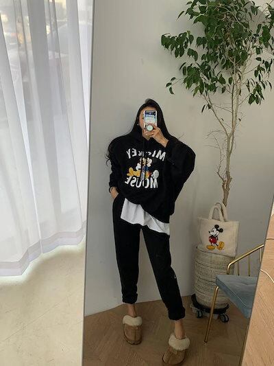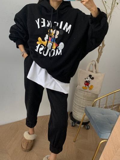 新しい 【2024新品入荷激安本日限定】ミッキープリントトレーナーレディースフード付きベルベットルーズトップカジュアルレギンスワイドレッグパンツスーツフード付きトレーナー