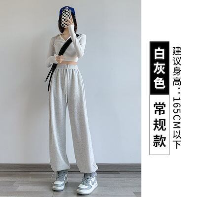 レディース スポーツパンツ 春秋新作 ハイウエスト ルーズプラス ベルベット カジュアル ワイドレッグ パンツ オールマッチ 巾着 スウェットパンツ