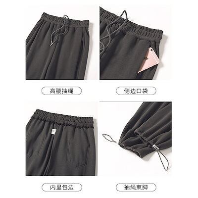 レディース スポーツパンツ 春秋新作 ハイウエスト ルーズプラス ベルベット カジュアル ワイドレッグ パンツ オールマッチ 巾着 スウェットパンツ