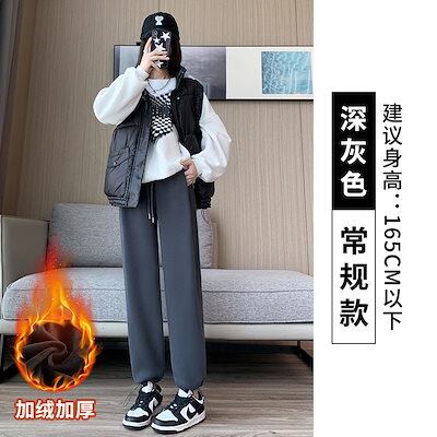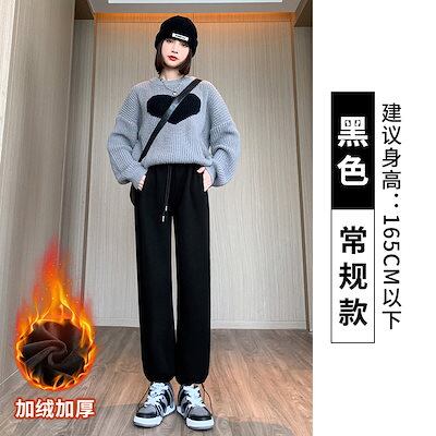 レディース スポーツパンツ 春秋新作 ハイウエスト ルーズプラス ベルベット カジュアル ワイドレッグ パンツ オールマッチ 巾着 スウェットパンツ★1