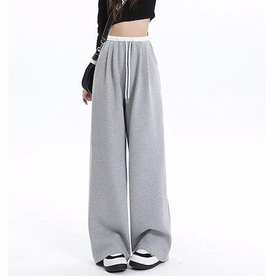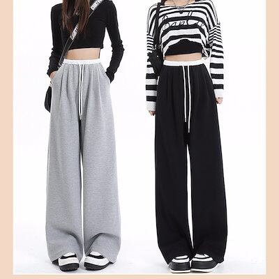 2024新しいスタイルのスポーツカジュアルパンツウエストゴムレディースパンツゆったり痩身ストレートワイドレッグスウェットパンツ