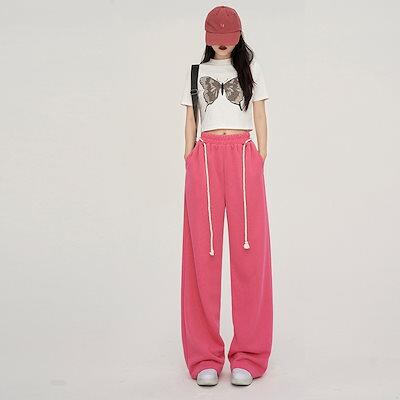 ドレープ付きグレーブルーワイドレッグパンツレディース秋の新作ハイウエストカジュアルパンツスリムストレートレッグスウェットパンツレディースパンツ★5