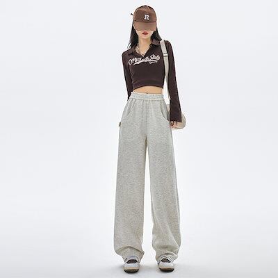 ハイウエスト ワイドパンツ レディースパンツ 新作 カジュアル アメカジ バナナパンツ スリム ストレートレッグ モップスウェットパンツ 婦人服★9