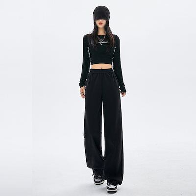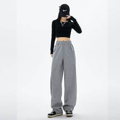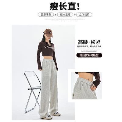 ハイウエスト ワイドパンツ レディースパンツ 新作 カジュアル アメカジ バナナパンツ スリム ストレートレッグ モップスウェットパンツ 婦人服★10