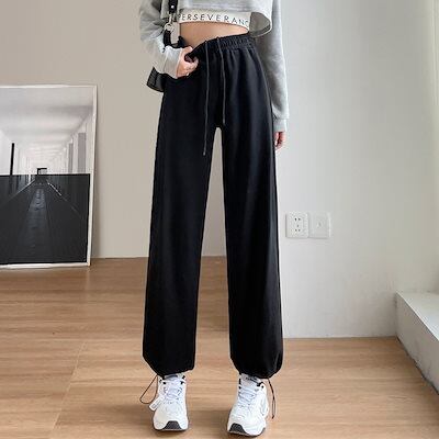 2024春新作グレーワイドレッグパンツレディースルーズストレートカジュアルパンツハイウエストスウェットパンツドローストリングスポーツパンツ