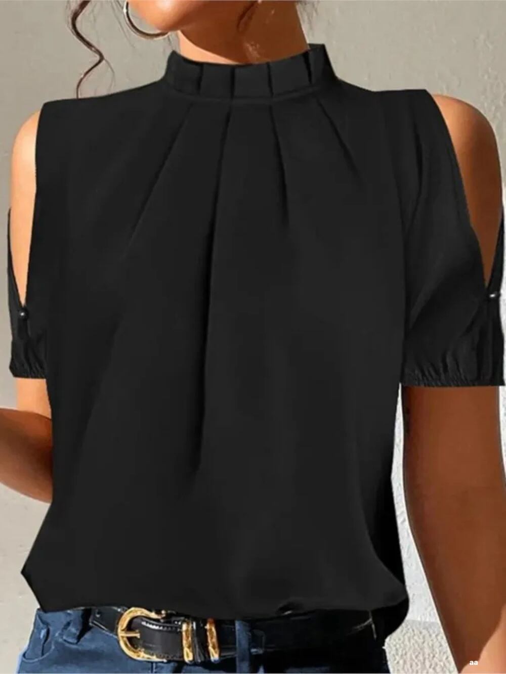 女性用半袖トップス,カジュアルシャツ,オフィスブラウス,黒,夏,ファッショナブル,2022 ボトム ボトムス ズボン T240619140910_01