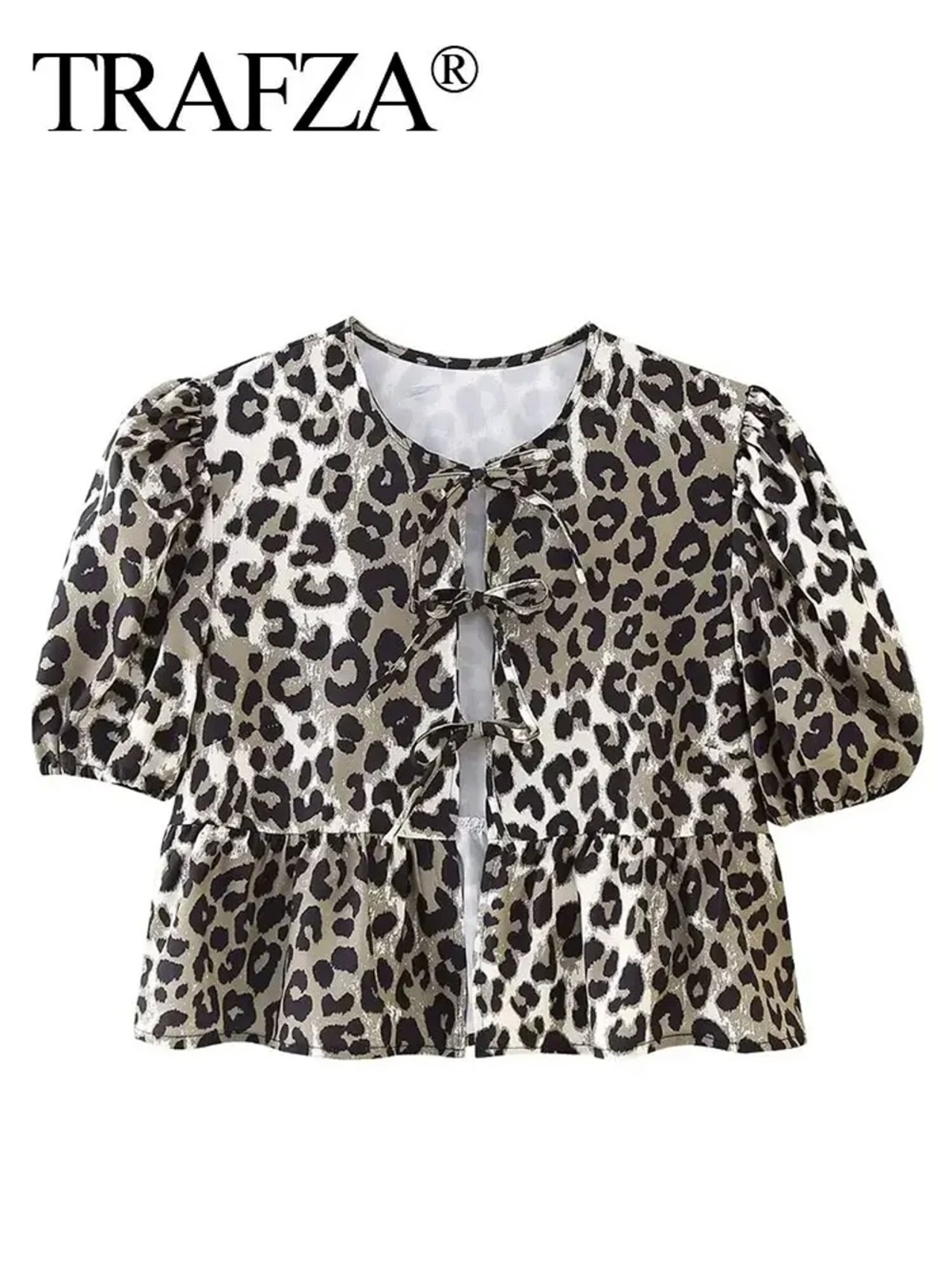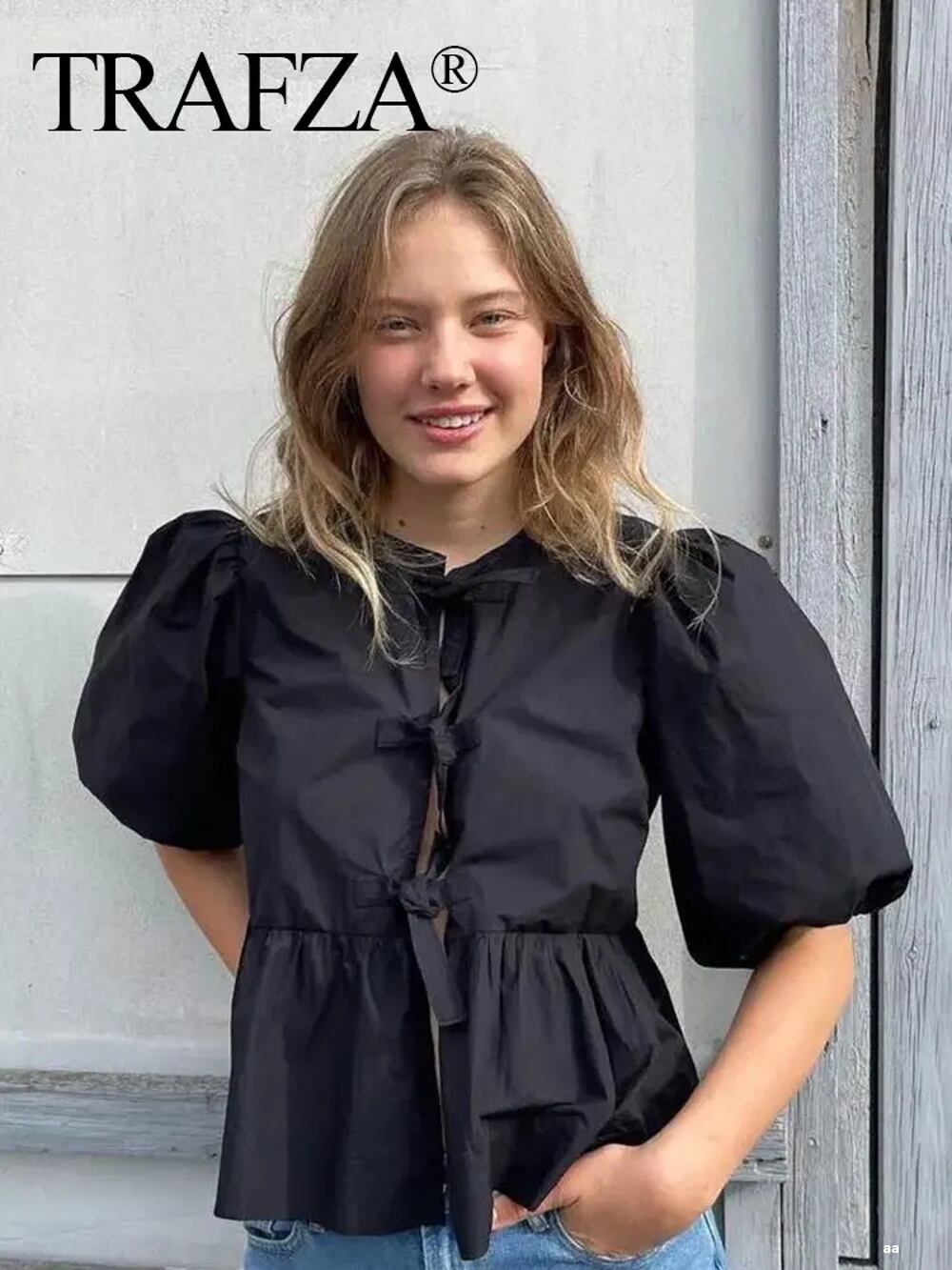 Trafza 女性用半袖ラウンドネックレースアップトップ,カジュアルブラウス,シックなストリートウェア,無地のファッションシャツ,2024 ボトム ボトムス ズボン T240619141032_01