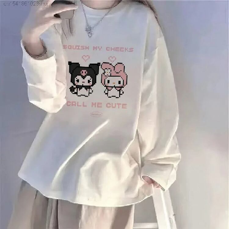 Sanrio-女の子のためのハローキティ長袖Tシャツ,白,韓国スタイル,ヒップホップスタイル,若い女の子のための服,yk2