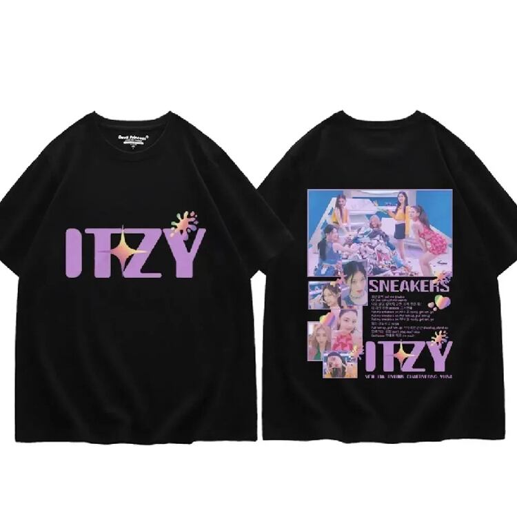 Itzy-女の子のためのファッショナブルなフラットTシャツ,半袖kpopスタイルの服,特大,トレンディ,yk2