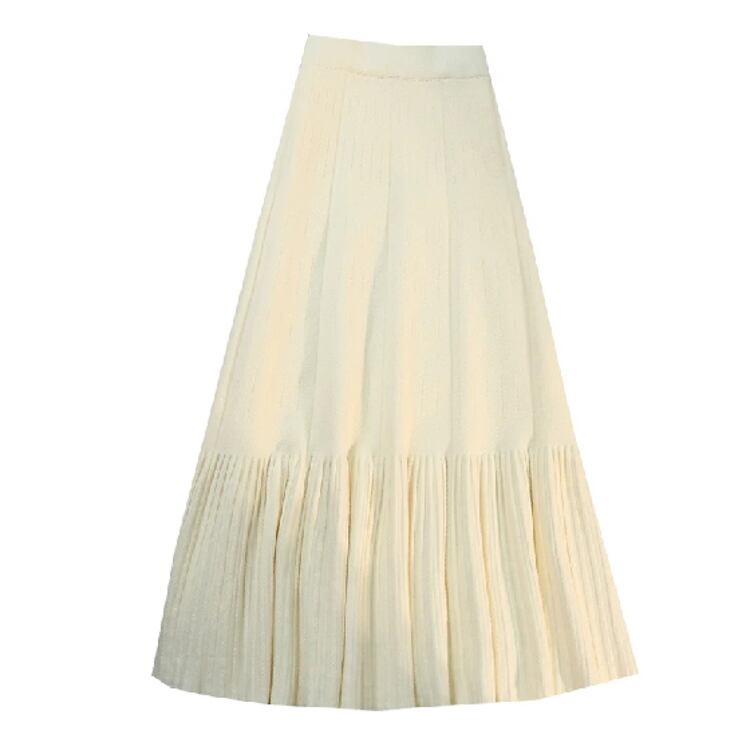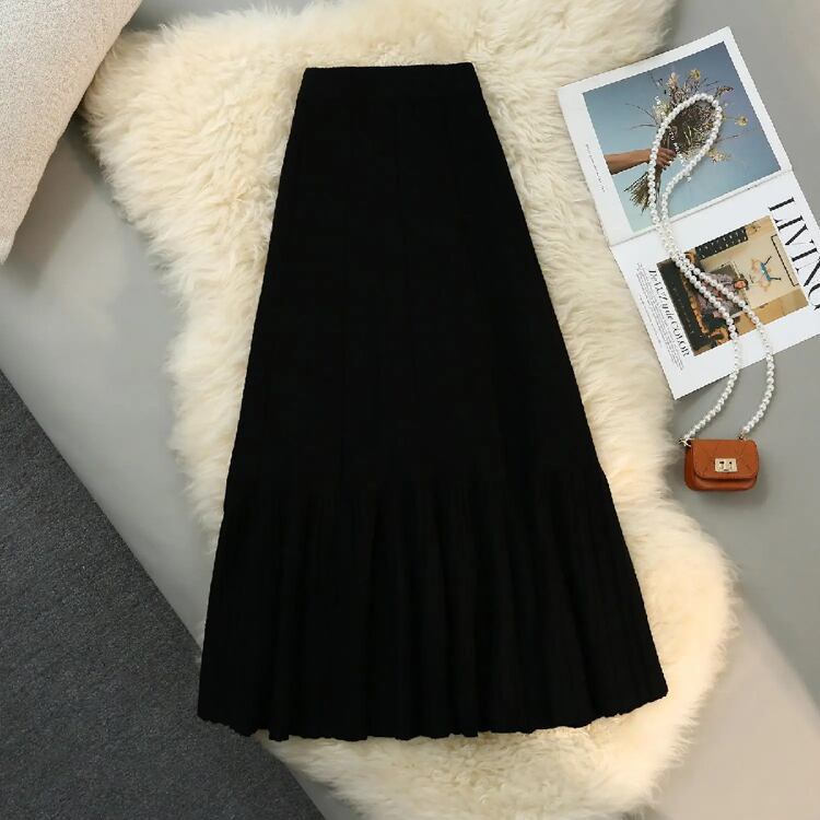 女性の韓国スタイルのニットロングスカート,伸縮性のあるハイウエスト,プリーツスカート,秋冬服,ファッショナブル,y2k