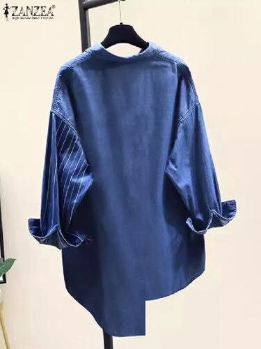 Zanzea-レディースストライプパッチワークブラウス、長袖シャツ、女性用ワークトップス、カジュアルルーズブラウス、特大プルオーバー、夏、2022
