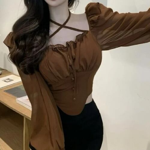 女性のためのシルクシフォンシャツ,セクシーなフリル,スラッシュカラー,女性のブラウス,ホットティートップ,エレガントな服,フレンチ