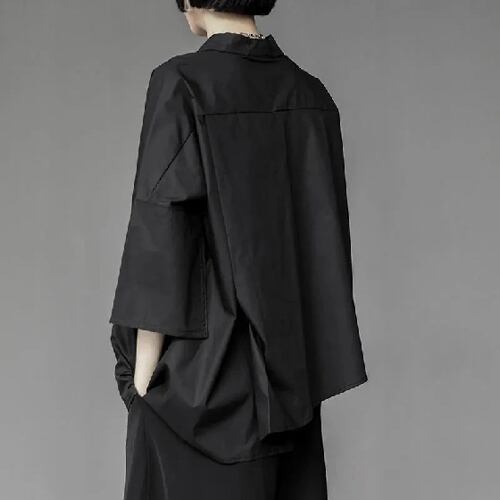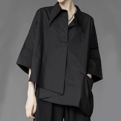 女性用シフォンブラックシャツ,ゴシックファッション,ストリートウェア,ルーズトップス,不規則,カジュアル,七分袖ブラウス,Y2K-Women