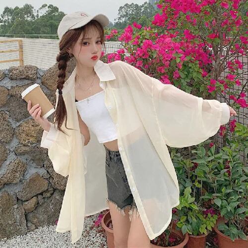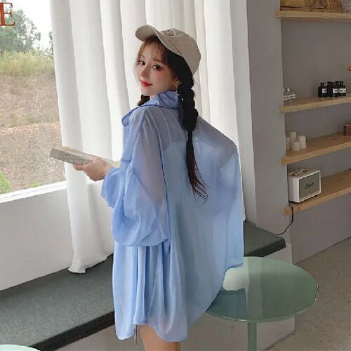 女性用ファインサンプロテクションTシャツ,ボタンアップ,スイベルダウンカラー,シフォンブラウス,アウトドア休暇,ビーチ日焼け止めシャツ,夏