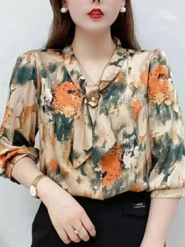 夏と春の半袖カジュアルシフォンブラウス,女性用半袖シャツ,蝶ネクタイの襟付き,df4198
