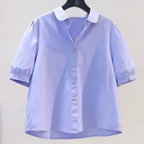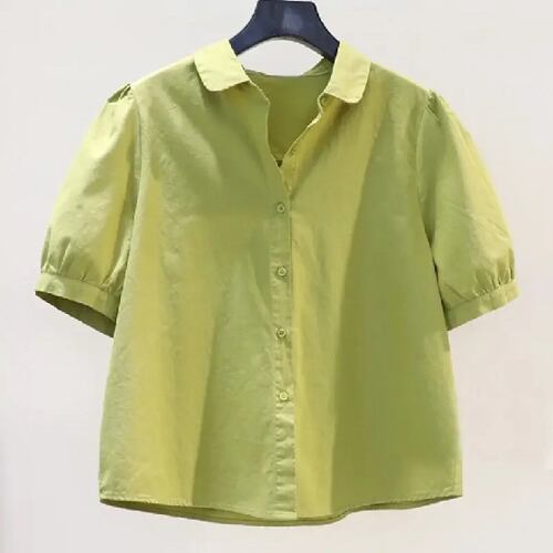 女性のための新鮮なスタイルのパフスリーブブラウス,ルーズフィット,半袖,カジュアルシャツ,用途の広いトップス,夏,2024