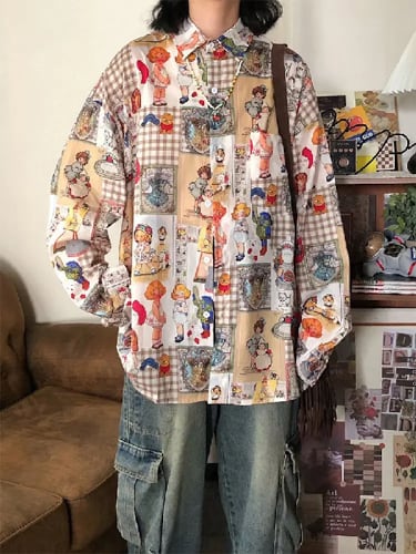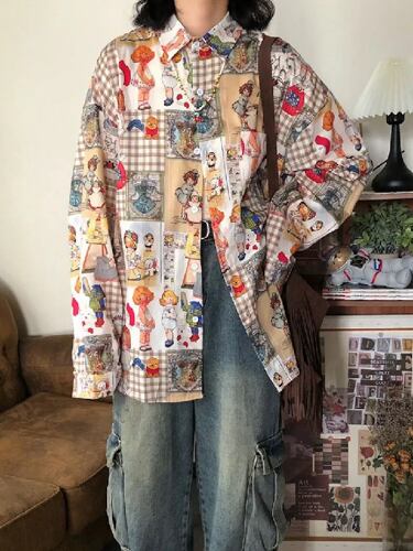 Xej-女性のためのレトロな市松模様のシャツ,かわいいスタイルのトップ,ヴィンテージの特大の長袖シャツ,新しい秋と秋,y2k,2023