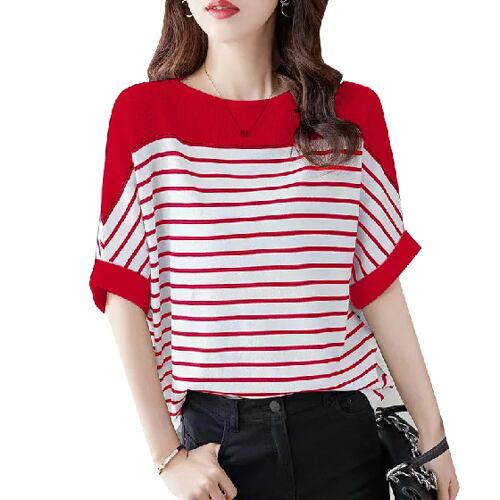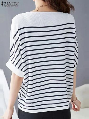 Zanzea-女性のエレガントなストライプのパッチワークブラウス,半袖のオフィスウェア,十分なカジュアルなラウンドネックのチュニック,夏のTシャツ,ファッショナブル,2022
