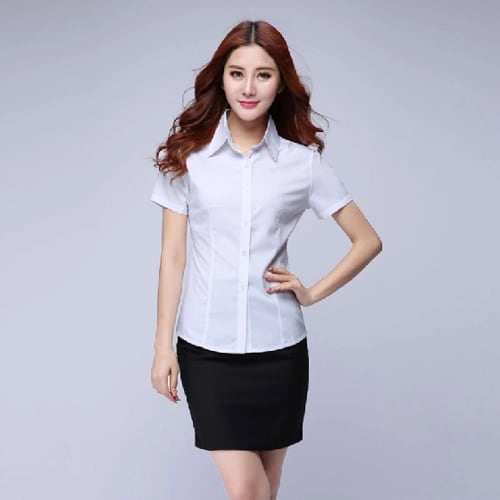 韓国の女性の白いシャツ,半袖のブラウス,ビジネスシャツ,女性のトップス,若者のブラウス,安い服