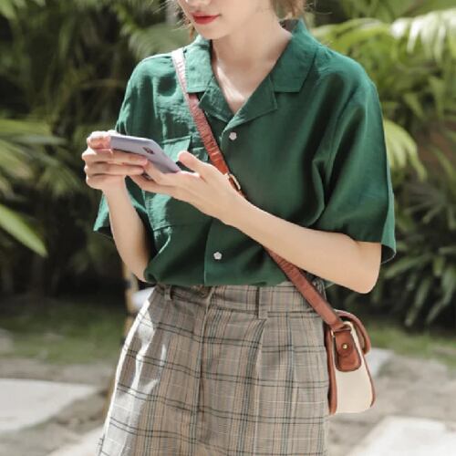 女性用ポケット付き半袖シャツ,レトロなストリートウェア,韓国スタイル,ファッショナブル,新しい夏のコレクション2024