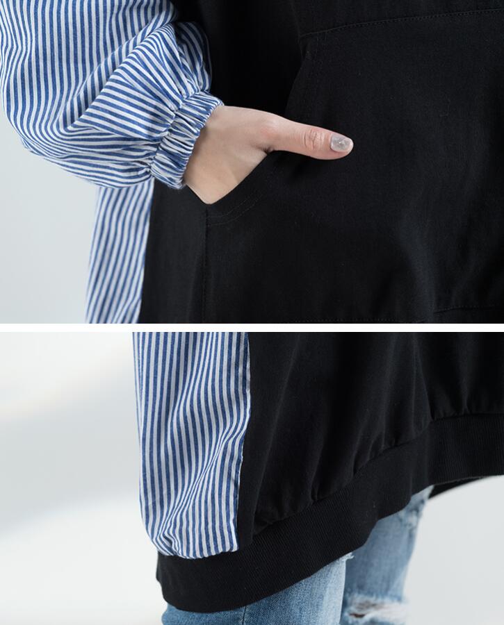 パーカートレーナースウェット切り替えフードストライプボリュームシャツレディース長袖