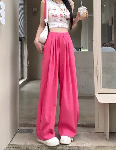 2024春夏パンツ ロング丈 ワイド ストレート ウエストゴム ハイウエスト 美脚効果 脚長効果 細見え 夏 白 黒 青 韓国ファッション レディース かわいい おしゃれ カジュアル お出かけ
