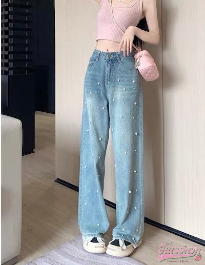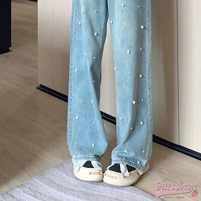 2024 春夏 パンツ デニム ジーンズ スキニー レッグ ハイウエスト 脚長効果 美脚効果 細見え 春 水色 ライトブルー ストリート系 カジュアル ズボンファッション デザインお出かけ