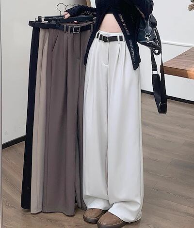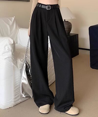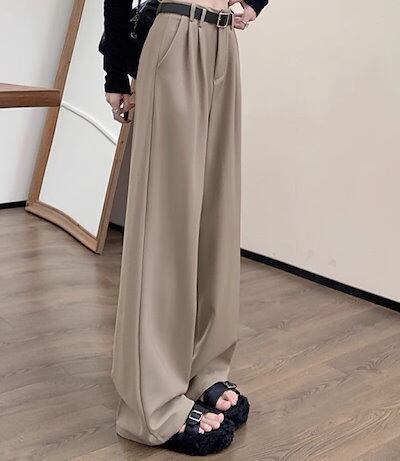 2024 春夏 パンツ ロング丈 ゆったり ハイウエスト 脚長効果 美脚効果 細見え 秋 カジュアル ストリート シンプル ファッション レディース お出かけ