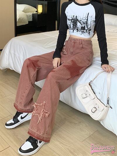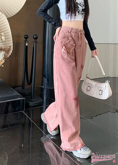 ハイウエスト ボトムス パンツ デニムパンツ スタイルアップ 脚長 ゆったり レッグ カジュアル きれいめ 色っぽ 女っぽ きれいめ 大人っぽ ストレート ファッション ゆったり 秋 冬 春 夏