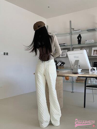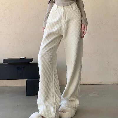 パンツ デニム ジーンズ モップパンツ ジャガード ワイド ストレート ハイウエスト 脚長効果 美脚効果 細見え 春 カジュアル ホワイト 白 韓国ファッション レディース お出かけ