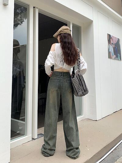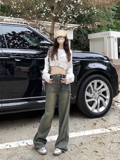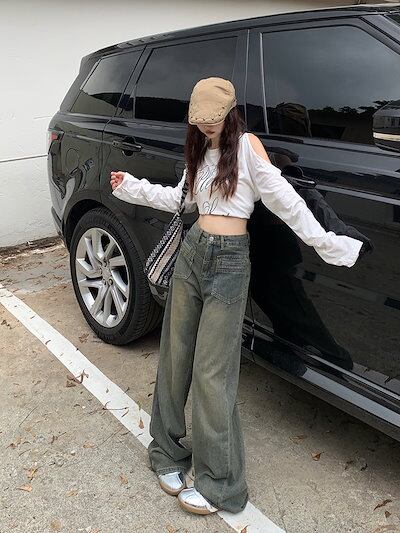 2024 春夏 パンツ デニム ジーンズ ロング丈 レッグ ストレート 脚長効果 美脚効果 細見え 秋 かわいい加工 カジュアル ファッション レディース お出かけ