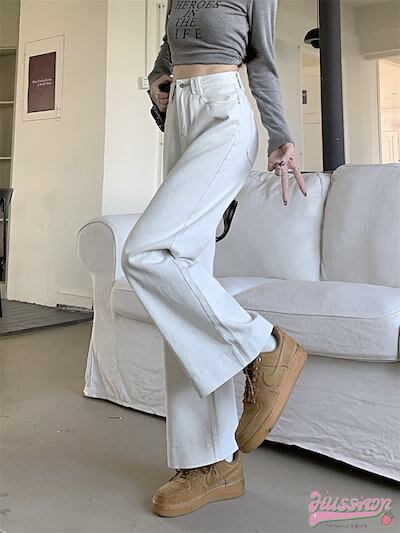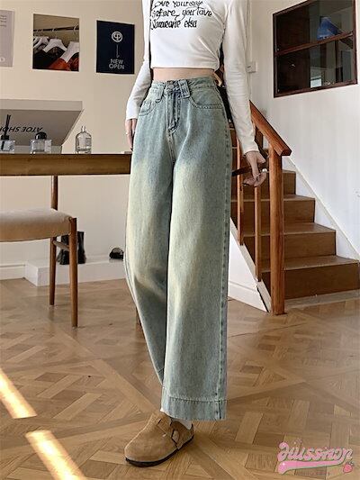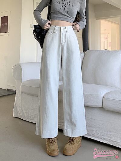 パンツ デニム ジーンズ ワイド ストレート ハイウエスト 脚長効果 美脚効果 細見え ウォッシュ加工 春 白 カジュアル 韓国ファッション レディース お出かけ