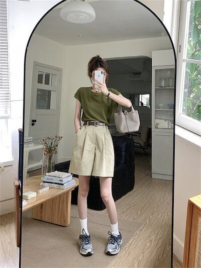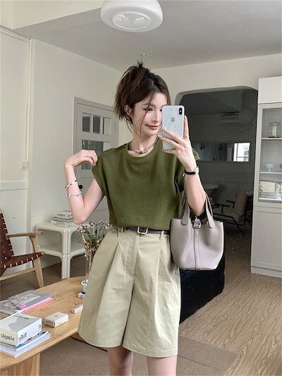 2024 春夏パンツ ショート丈 ハーフパンツ 五分丈 ワイド ハイウエスト 美脚効果 脚長効果 細見え 夏 茶色 韓国ファッション レディース かわいい おしゃれ カジュアル お出かけ