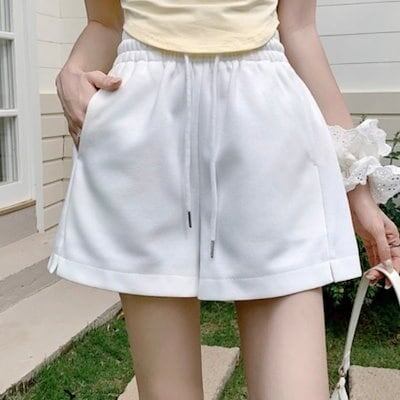 2024 春夏パンツ ショート丈 ワイド ウエストゴム ハイウエスト 脚長効果 美脚効果 細見え 夏 白 黒 カジュアル おしゃれ かわいい 韓国ファッション レディース お出かけ★1