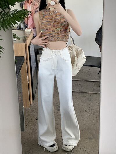 2024春夏パンツ デニム ジーンズ ロング丈 ワイド ストレート ハイウエスト 美脚効果 脚長効果 細見え 夏 白 黒 青 韓国ファッション レディース かわいい おしゃれ カジュアル お出かけ